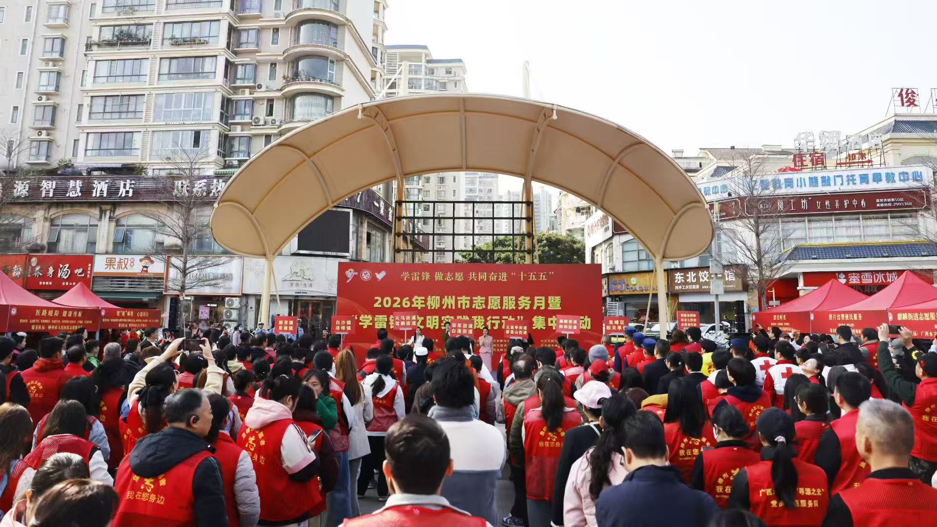 3月5日,由中共柳州市委社会工作部、柳州市精神文明建设办公室、共青团柳州市委员会、中共鱼峰区委员会主办的2026年柳州市志愿服务月暨“学雷锋·文明实践我行动”集中示范活动在鱼峰区麒麟街道南亚社区举行。来自全市各界的志愿者以实际行动践行雷锋精神,40项便民服务项目集中“亮相”,涵盖生活便民、健康保障、群体关爱、文化体验等多个领域,全方位满足市民多样化需求。